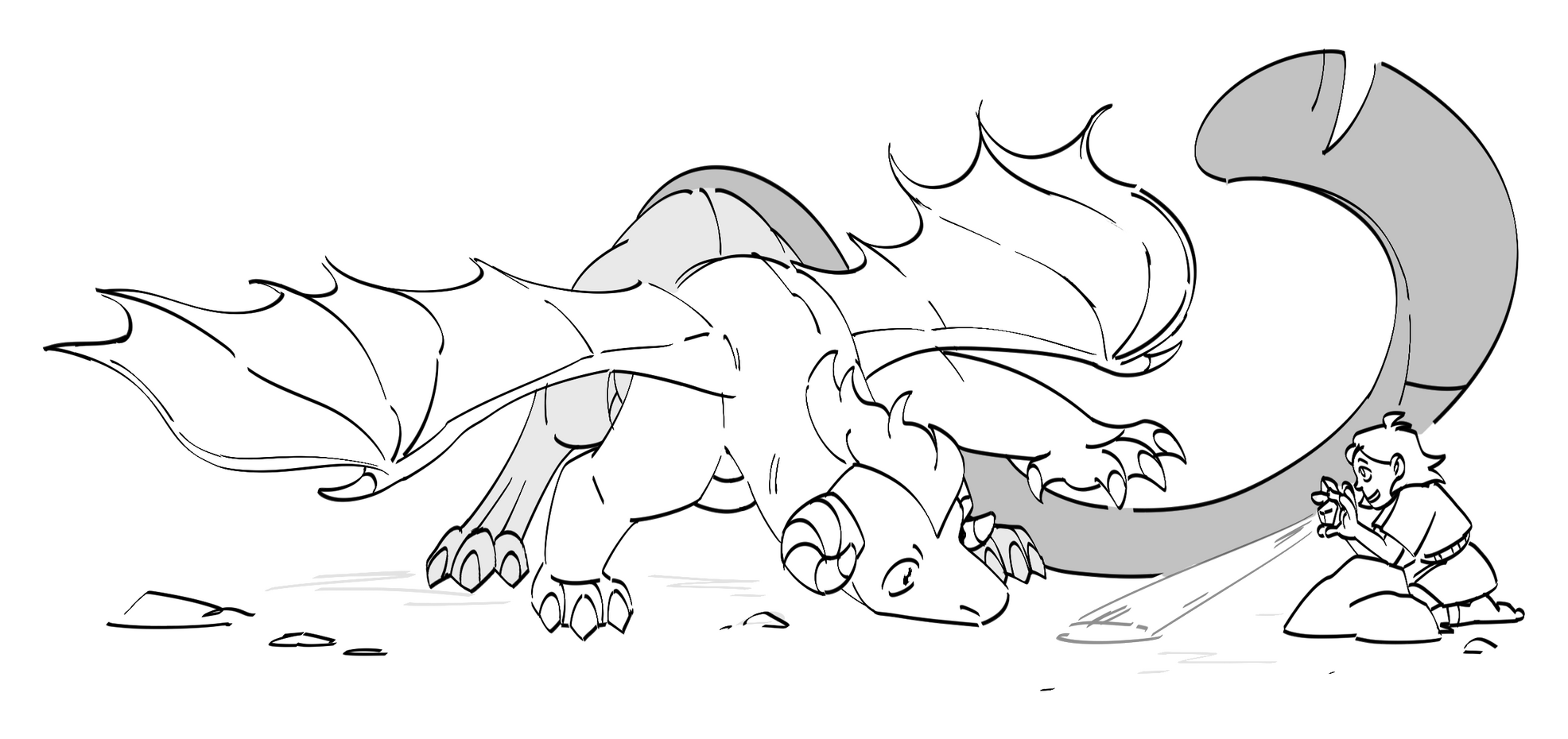 "A dragon is left in charge of protecting their home after her father has left to hunt food for the upcoming winter. She’s put to the test when a boy from the nearby village her father had warned her about ends up seeking shelter in their home."
